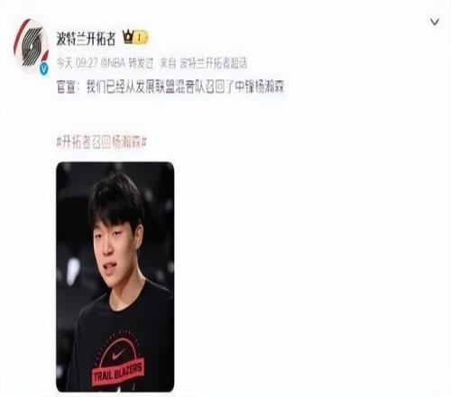 开拓者主帅回应杨瀚森被下放:他是个真正有职业精神的球员此前已官宣被召回