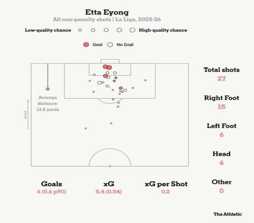 近日,The Athletic发表专题文章,分析了最近表现出色的莱万特球员埃永,他最近得到了多家豪门的专题,TA表示他拥有超高的效率与超强的门前嗅觉,此外他还有全面多样的技术特点,以下为专题文章。