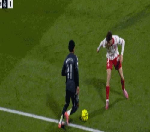 罗德里戈带球杀入禁区,赫罗纳后卫乔尔-罗卡正面防守。罗德里戈连续假动作晃动、变向,乔尔-罗卡伸出右脚,踢到罗德里戈的右小腿上。罗德里戈倒地,裁判没有判罚。